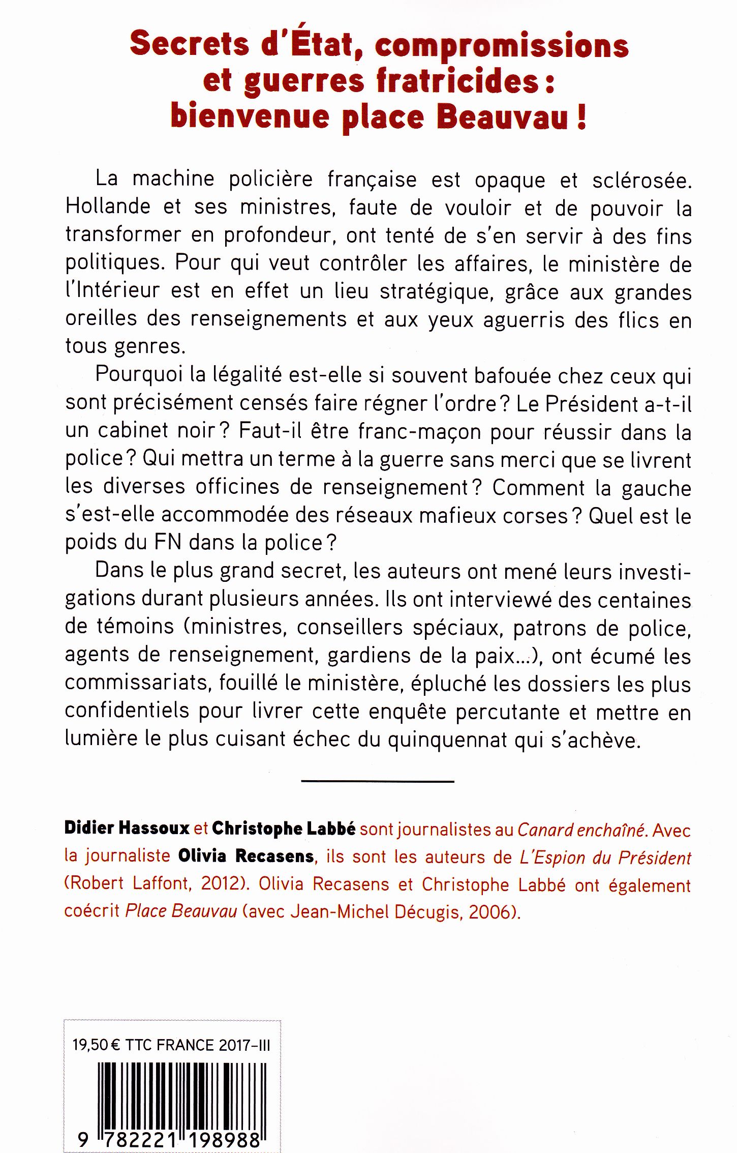 — Dans le monde de la politique et de la gouvernance du pays, « Bienvenue Place Beauvau » d’Olivia Recasens, Didier Hassoux et Christophe Labbé, paru chez Robert Laffont en 2017 :