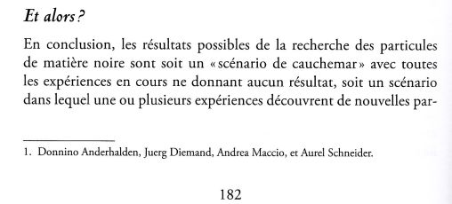 ‘Le Mystère de la matière noire’ de Gianfranco Bertone s’achève par la même apostrophe fameuse que j’ai déjà utilisée plus haut: