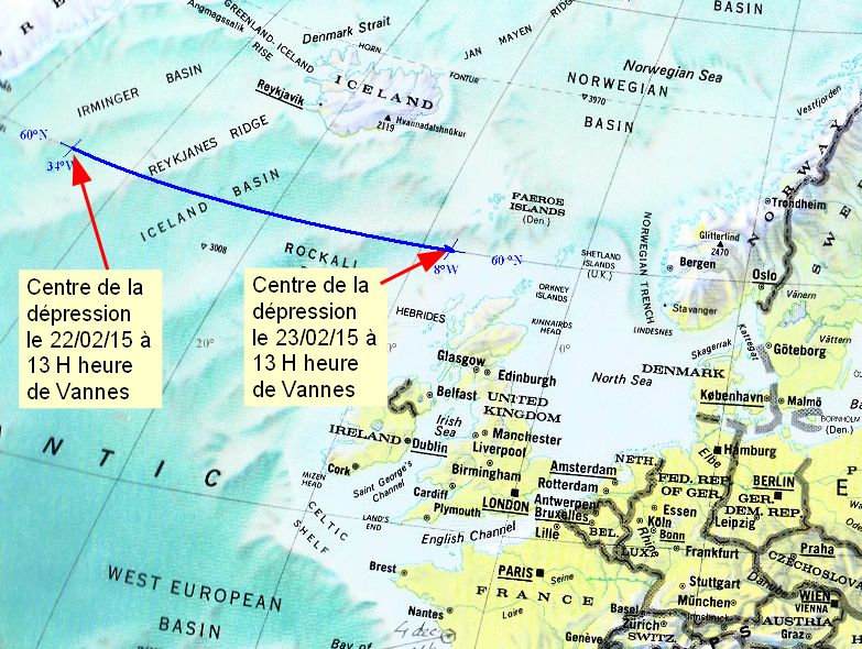 –> Celle du 23 février, 13 H, dans le Nord de l’archipel des Hébrides , à une longitude estimée à 8°W .