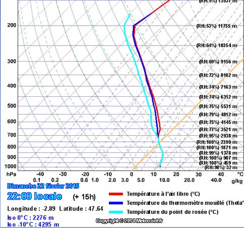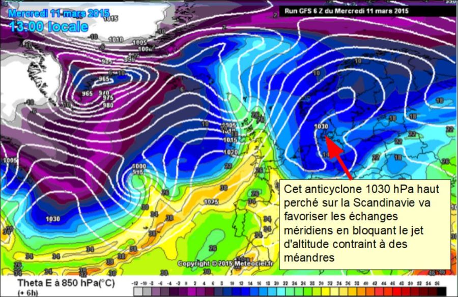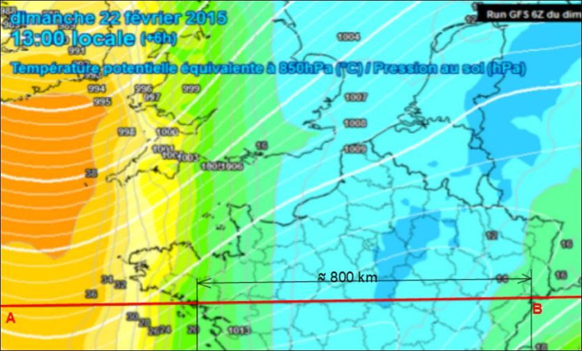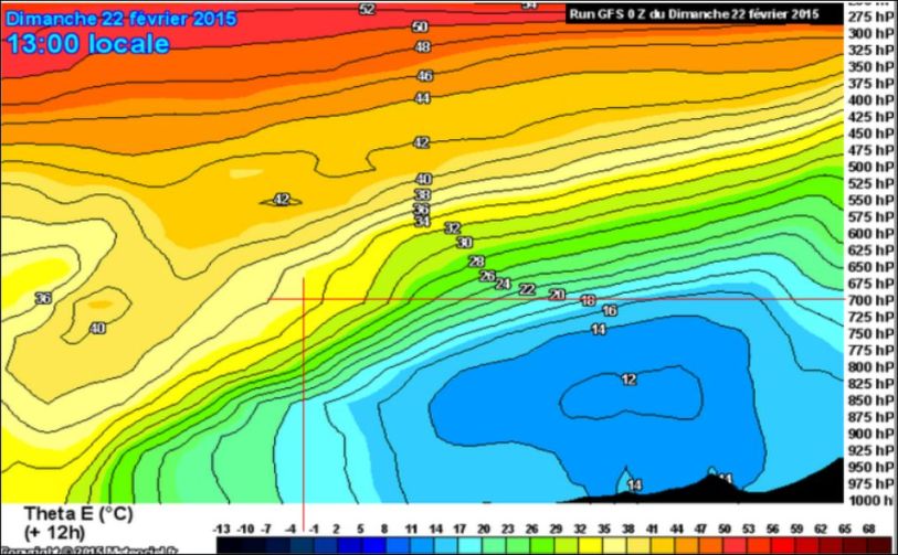 Pour en donner un exemple concret, nous allons reprendre une analyse effectuée en février 2015 . Voici quelle était alors la situation de l’atmosphère le 22 février 2015 à 13 H 00 :