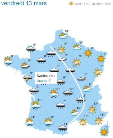 Pronostic : Il n’y aura pas d’orage ce vendredi 13 mars 2015 en fin de soirée .