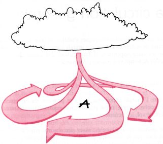 C’est ainsi qu’on pourra suivre la naissance d’un cumulus . Lorsqu’une partie de l’atmosphère est réchauffée par l’échauffement du sol, un mouvement de convection s’établit, provoquant une colonne d’air ascendant qui se constitue ainsi au cœur du nuage naissant, avec des mouvements d’air descendant à la périphérie. En s’élevant, l’air subit une détente adiabatique, ce qui refroidit la vapeur d’eau et provoque sa condensation. Au fur et à mesure que le nuage se charge en eau, le cumulus s’étire en hauteur et forme une tour appelée convectus.