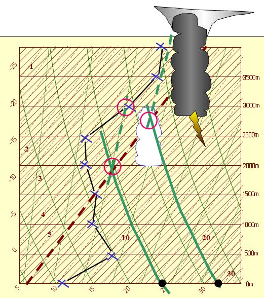 Pour comprendre comment l’état de l’atmosphère peut faire passer en quelques heures d’un ciel pur sans la moindre trace de nuage, à un ciel menaçant , obscurci d’immenses masses nuageuses remplies d’éclairs et de grondements, on a inventé une représentation graphique appelée un émagramme .