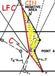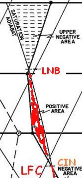 S’il n’existe pas de CIN, ou si elle a été annihilée par un forçage extérieur, la particule ayant alors atteint le Niveau de convection libre LFB, et donc acquis une accélération positive, va continuer de suivre l’adiabatique saturée jusqu’à ce que celle-ci recoupe la courbe d’état. C’est là le Niveau de flottabilité neutre LNB. Ce sera aussi le sommet des cumulus qui se seront développés.