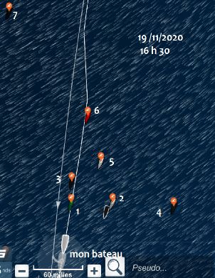 Je me positionnais donc hier jeudi 19 novembre, 15 h 30, entre le 18ème et le 19ème skipper.