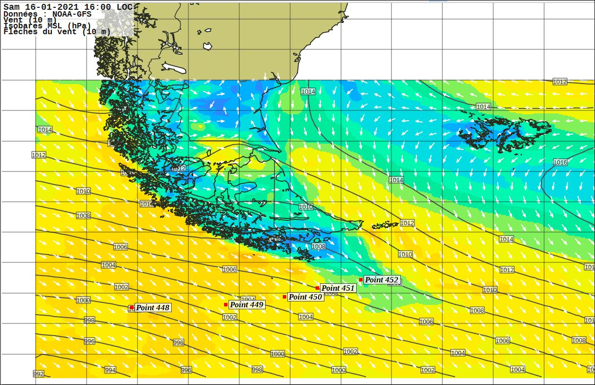 Dans ce Vendée Globe virtuel, vous voyez que je suis confronté à une tâche d’une difficulté similaire, sauf que je ne cours pas le risque de périr corps et biens . Quelle route vais-je devoir choisir pour entamer ma remontée de l’Atlantique Sud ? Contourner les Malouines par l’Est ou par l’Ouest ?
